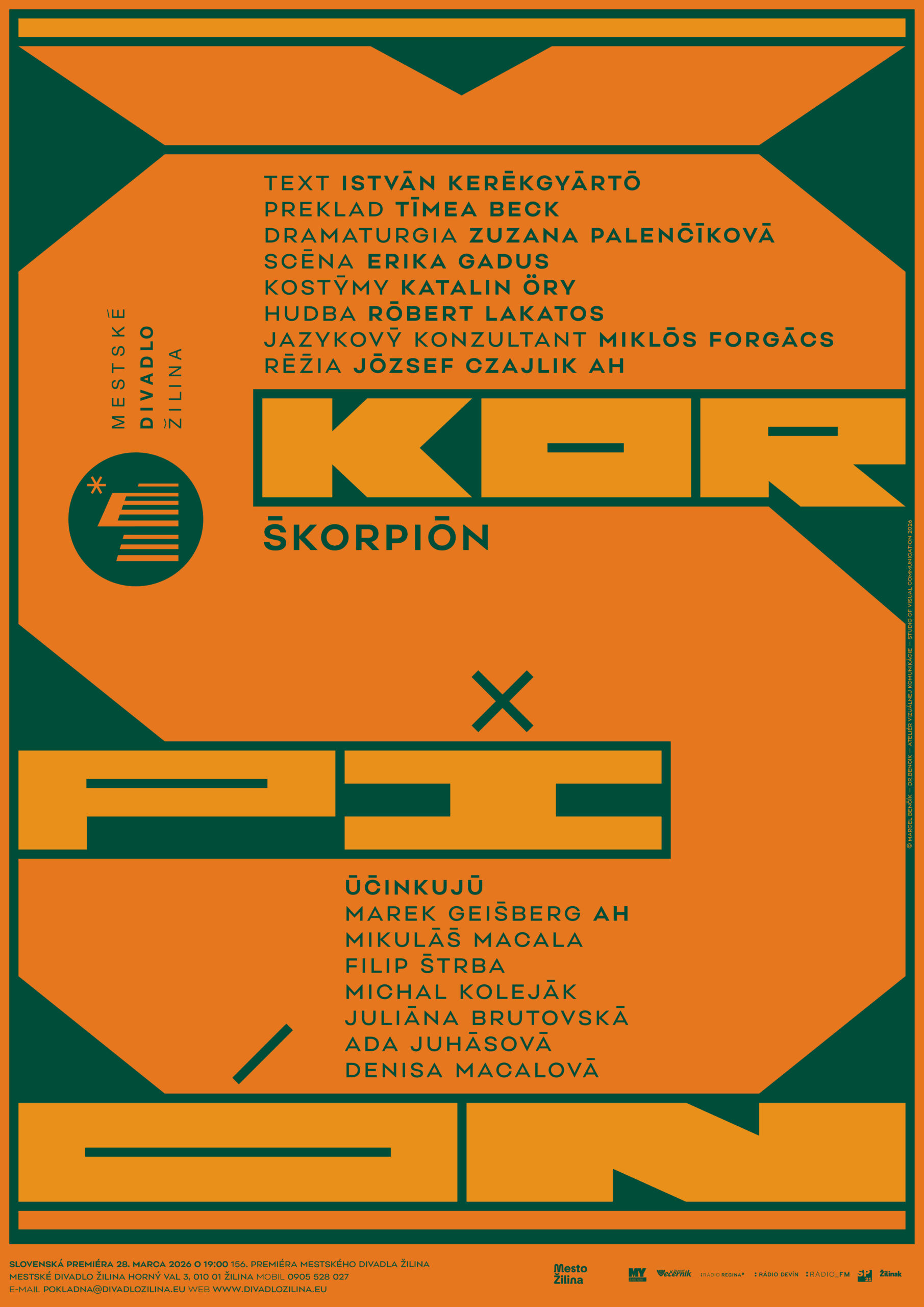 Dielo originálne spája rodinnú drámu s kritickým pohľadom na spoločenské pomery a presne mapuje postsocialistickú transformáciu moci: od dravej privatizácie cez rodinný kapitalizmus až po súčasné formy ekonomickej a symbolickej nadvlády. Svetová premiéra sa uskutočnila 3. decembra 2023 v budapeštianskom divadle Belvárosi Színház v réžii Gábora Mátého. Naštudovanie v Mestskom divadle Žilina prinesie dve premiéry v jednom: prvé uvedenie Škorpióna na slovenských javiskách a premiérové hosťovanie režiséra Józsefa Czajlika, ktorý v roku 2015 úspešne inscenoval Kerékgyártóv román Spiatočka / Rükverc v Divadle Thália Košice. Táto inscenácia získala cenu Dosky za najlepší mužský herecký výkon a vyvolala výrazný kritický aj festivalový ohlas.