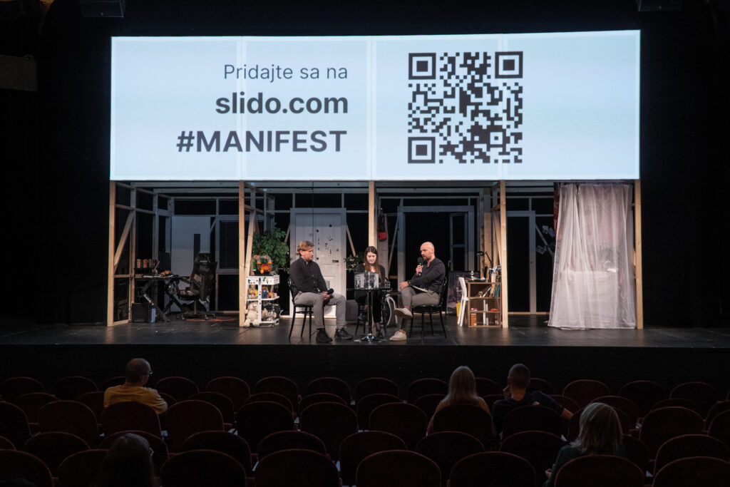 Inscenácia Manifest otvára naliehavé témy, o ktorých je dôležité sa rozprávať. Aj preto pripravujeme po predstaveniach diskusie s odborníkmi s cieľom prinášať debaty o problémoch mladých a zároveň o tom, ako sa môžu chrániť pred extrémistickou radikalizáciou, manipuláciou a zastrašovaním na sociálnych sieťach.